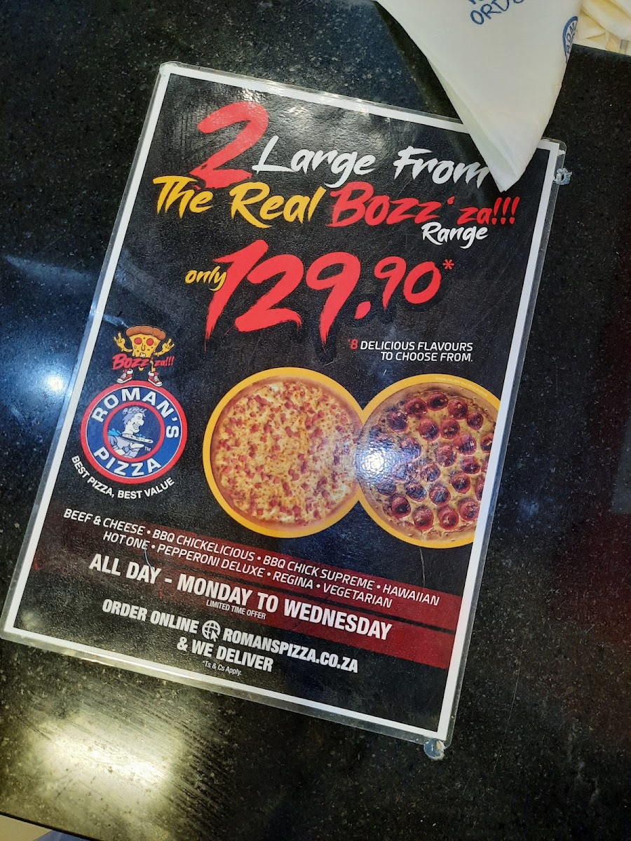 Whether you crave a classic Margherita or a gourmet topping, each pizza is an embodiment of love for the craft. With a welcoming atmosphere and excellent service, Roman's Pizza Okavango Crossing is set to become your go-to pizza destination in Cape Town!